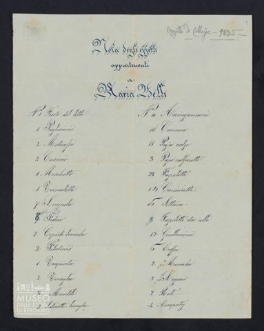 “Nota degli effetti appartenenti a Maria Belli”